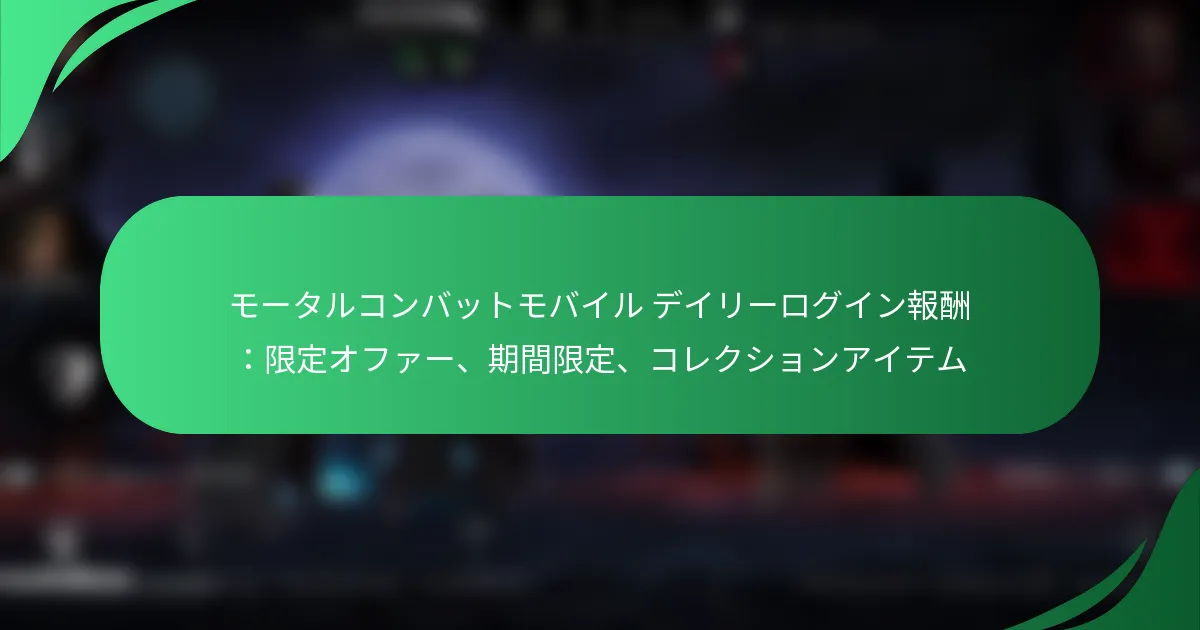 モータルコンバットモバイルのデイリーログイン報酬は、プレイヤーが毎日継続的にログインするための貴重なインセンティブを提供します。ログインストリークを維持することで、プレイヤーはプレミアム通貨、限定アイテム、キャラクターのアップグレードを獲得でき、全体的なゲーム体験が向上します。これらの報酬は、日々のエンゲージメントを促すだけでなく、ゲーム内での進行に必要なリソースも提供します。 モータルコンバット...