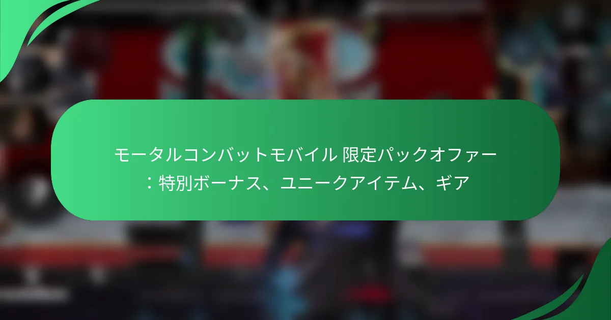 モータルコンバットモバイルの期間限定パックオファーは、プレイヤーにユニークなアイテム、ボーナス、ギアを短期間提供する独占プロモーションです。これらのパックは、特別なキャラクター、ユニークなスキン、一時的なブーストを提供することで、ゲームプレイを向上させ、戦闘でのパフォーマンスを大幅に改善することができます。これらのパックのコストとゲーム内の利点を評価することで、プレイヤーは自分のゲーム体験にとって...